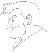 A Vulture captain, and friend of Ennil El, he gives her information about the GX-9900 Gundam X piloted by Garrod Ran after buying parts from her to an old nuclear power plant.[1] He later appears before her while she is taking a shower. They drink wine together and he also takes a shower, leaving his clothes on her bed.[2]